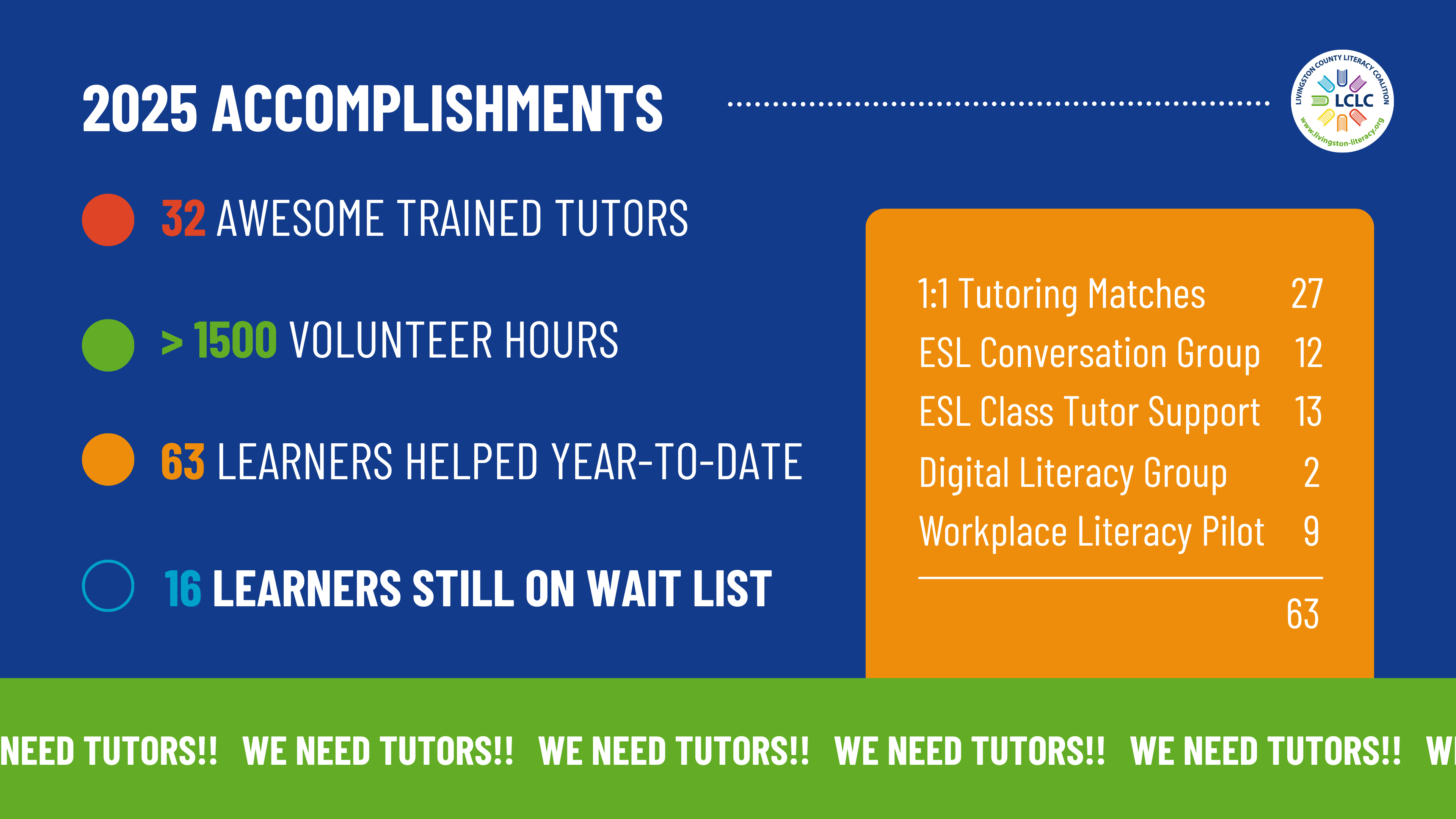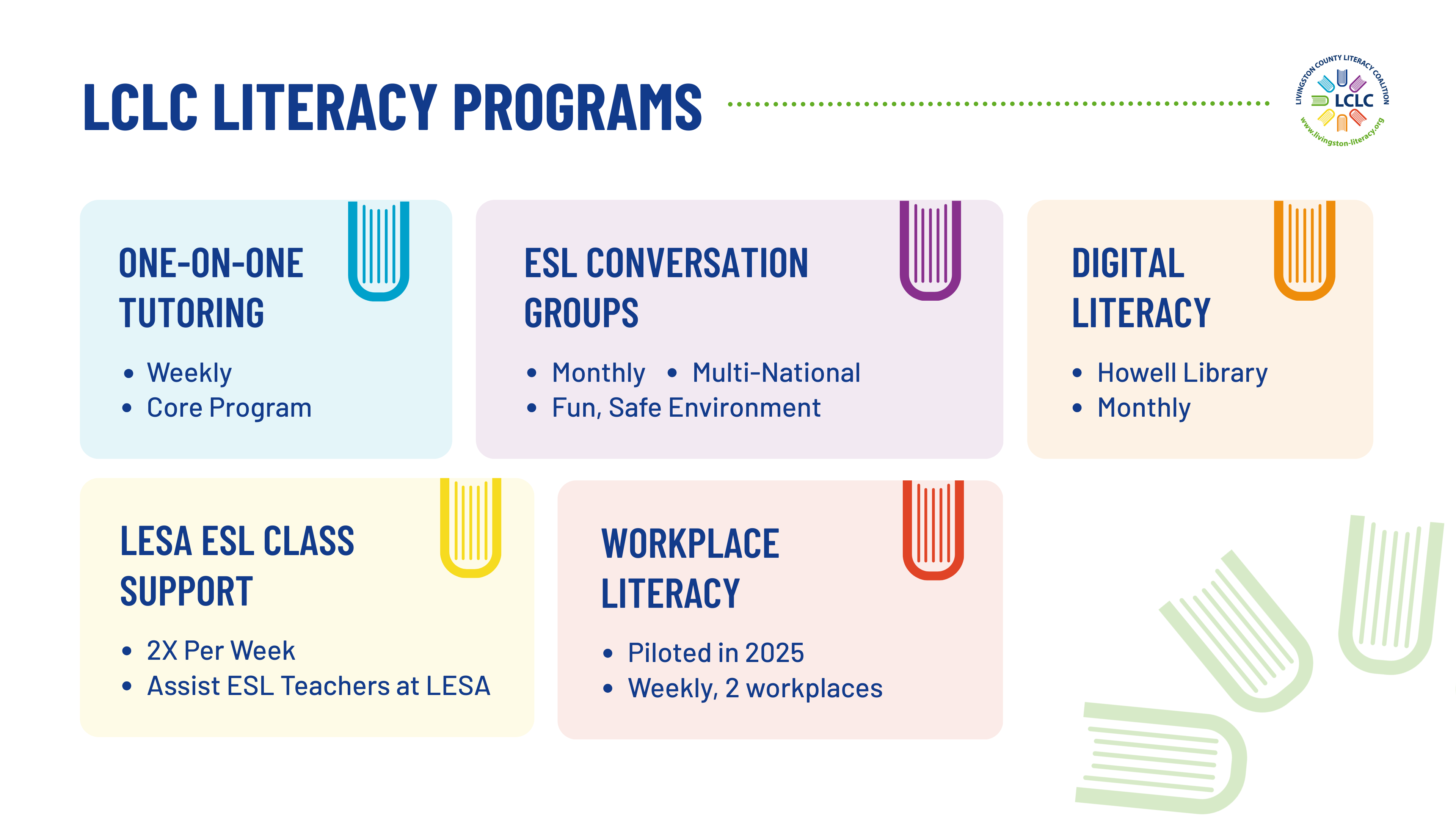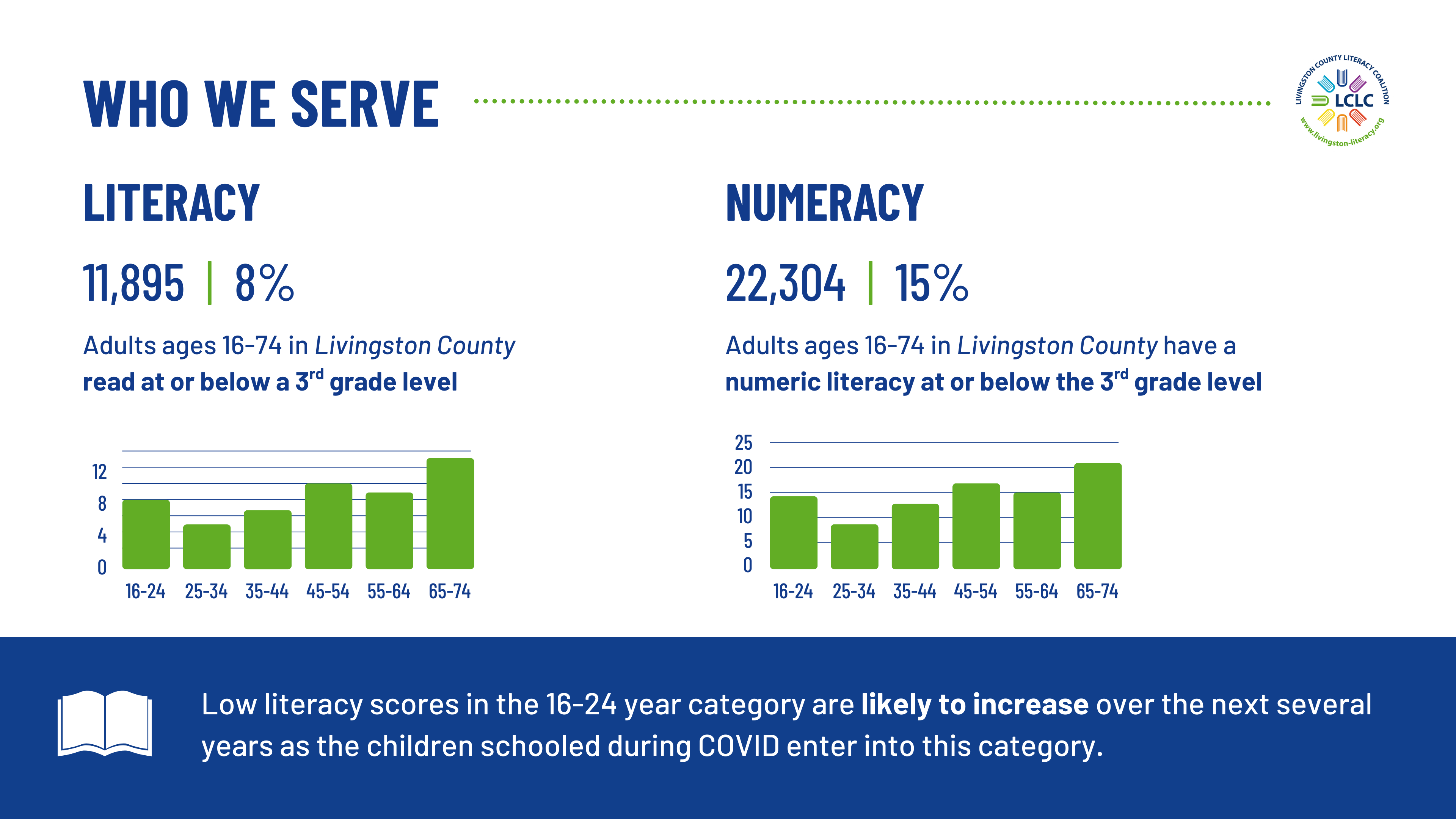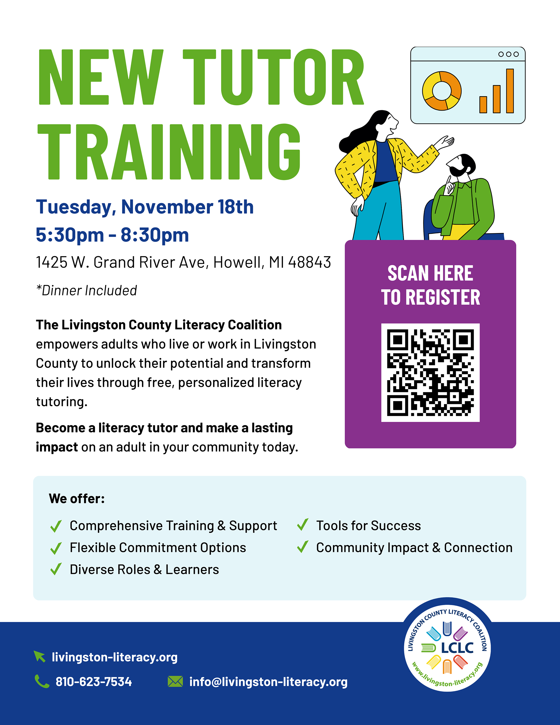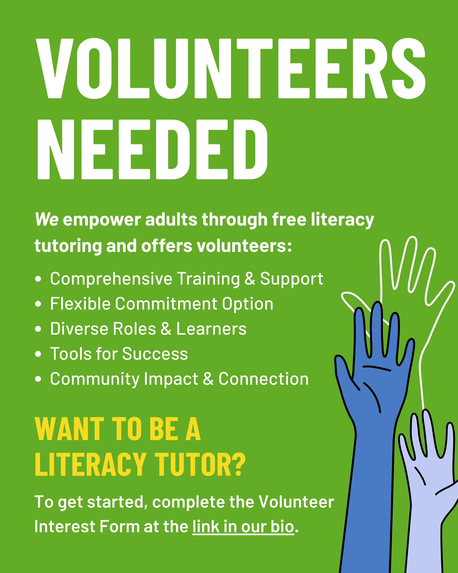 Livingston County Literacy Coalition volunteer flyers and social media post